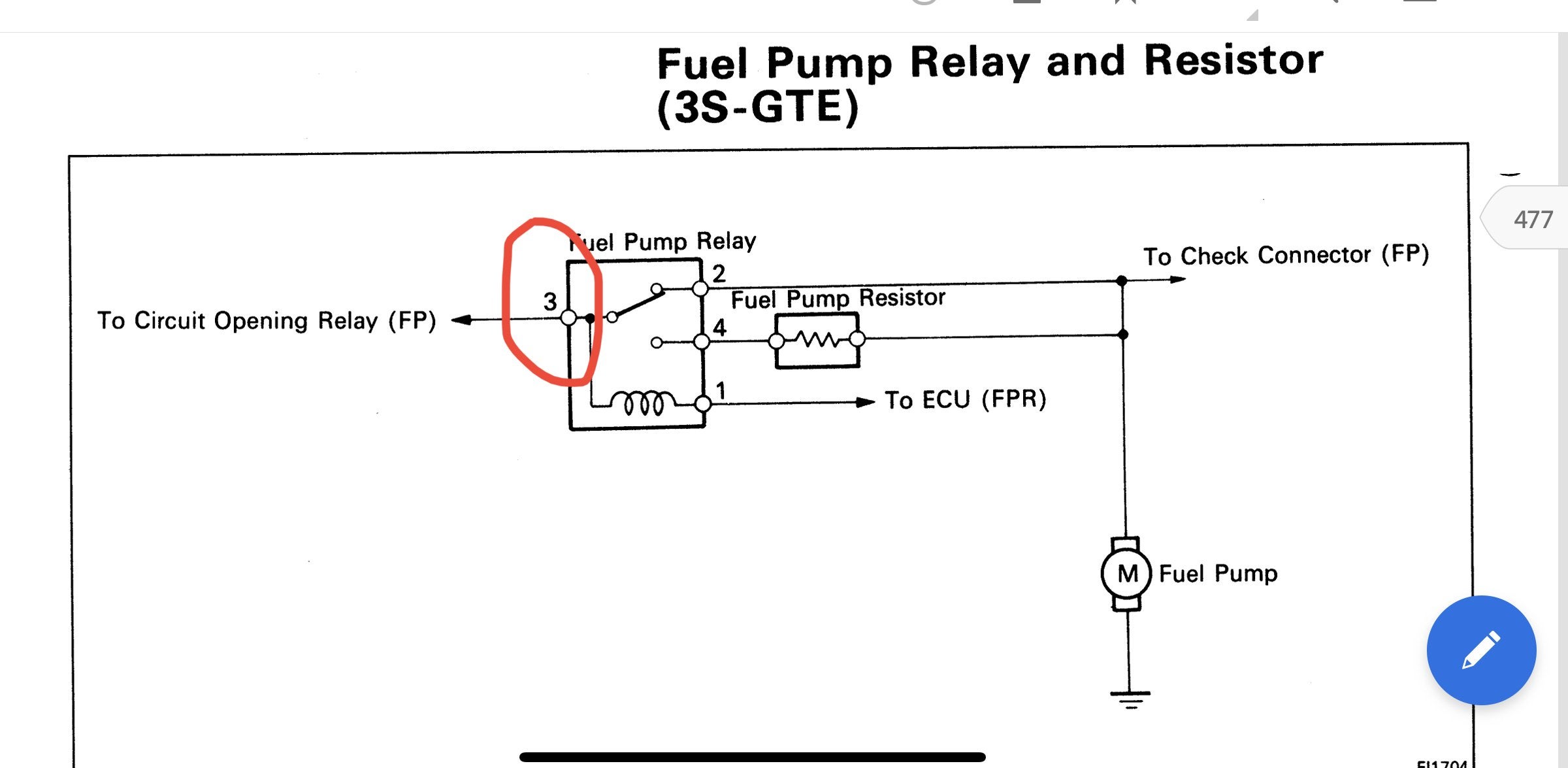 OEM you have the Circuit Opening Relay which sends power from the Main EFI Relay to the Fuel Pump Resistor Relay. It can only do this when the key is in the STA position and when the engine is running. The FC pin grounds through the ECU controlling the safety part of the system.